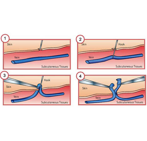 Μικρές Εκτομές: Κατά τη διάρκεια της επέμβασης, γίνονται μικρές εκτομές (mini incisions) στο δέρμα κοντά στις παθητικές φλέβες. Αυτές οι εκτομές είναι συνήθως πολύ μικρές, περίπου 1-3 χιλιοστά.
