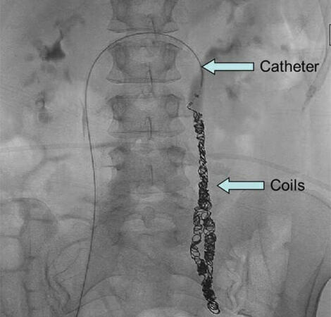 Ο εμβολισμός με καθετηριάζουσα επέμβαση είναι μια ελάχιστα επεμβατική διαδικασία όπου ένα καθετήρας εισάγεται στις επηρεασμένες φλέβες, και μικροσκοπικά έμβολα σε συνδυασμό με σκληρυντικό αφρό χρησιμοποιούνται για τον αποκλεισμό των κιρσοειδών φλεβών, ανακατευθύνοντας τη ροή του αίματος. Συχνά, αυτή η διαδικασία είναι αποτελεσματική στην ανακούφιση των συμπτωμάτων.